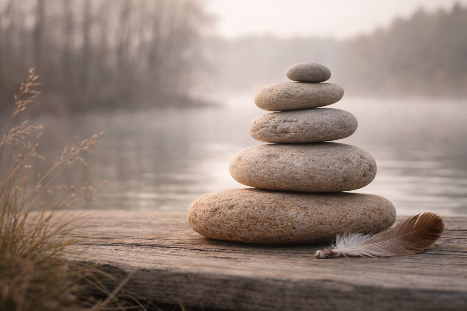 Later, rond dag vier of vijf, kwam er ineens een inzicht dat me liet glimlachen. Ik dacht: misschien heb ik niet zomaar stenen verzameld… misschien heb ik ze verzameld als symbolische ankers voor mijn sankhara’s. Voor de lagen die loskwamen. Voor het werk dat ik aan het doen was. Niet om eraan vast te houden, maar juist om te herinneren dat het pad zich vanzelf ontvouwt wanneer je blijft zitten, blijft kijken, blijft oefenen.